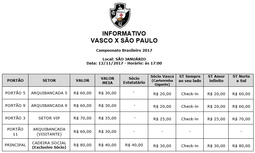 2. SÓCIO ESTATUTÁRIO DO VASCO – o SÓCIO DO CLUBE terá direito a meia-entrada ao comprar seu ingresso nas bilheterias em São Januário.