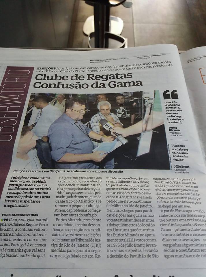 Jornal português 'O Jogo' chama o Vasco de 'Clube de Regatas Confusão da Gama' por causa de eleição