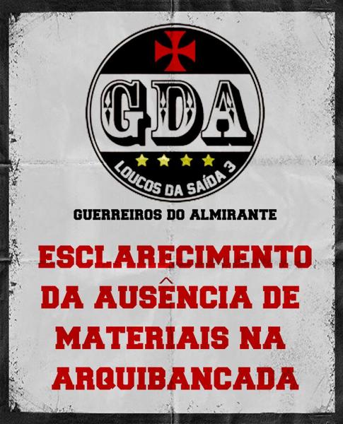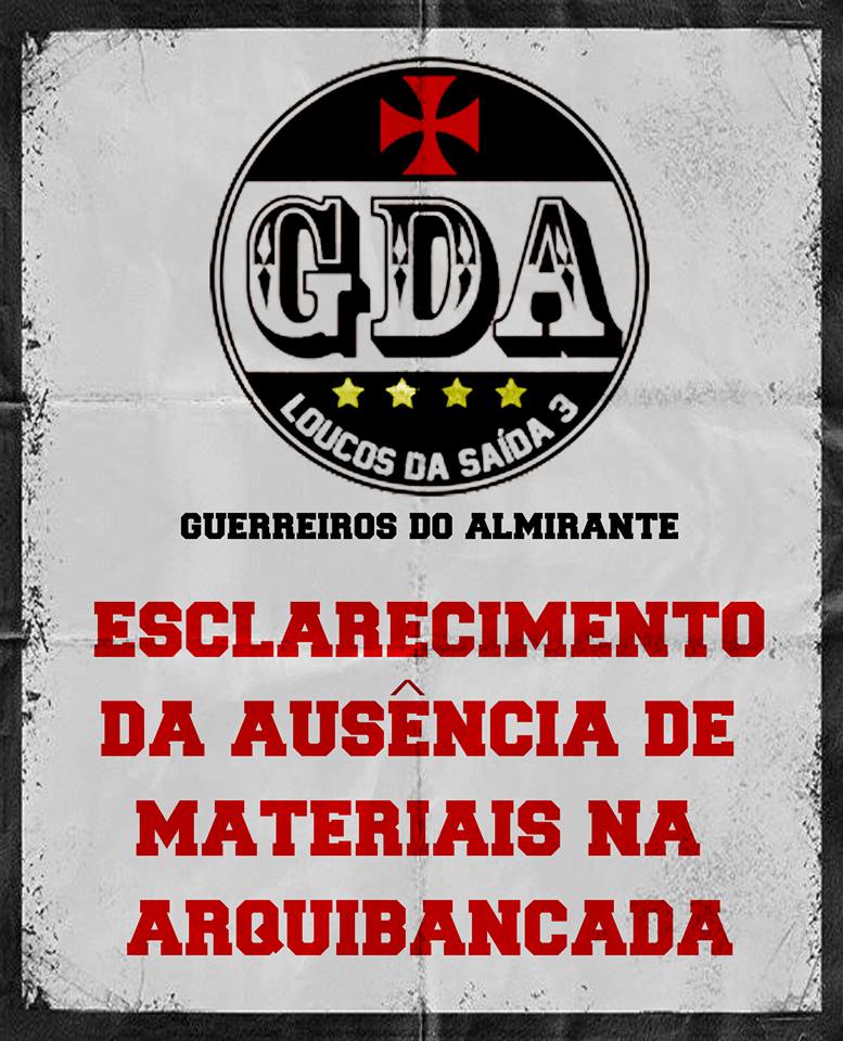 Em respeito aos membros e simpatizantes da Guerreiros do Almirante, viemos esclarecer a ausência de materiais na arquibancada nos últimos jogos.