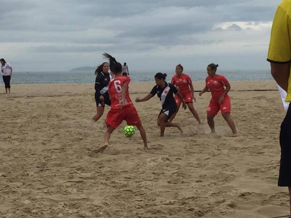 O Deptº Feminino da FEBSERJ realizou ontem apesar da forte chuva que caiu no Rio de janeiro o Desafio Rio Feminino de Beach soccer entre as equipes do America e Vasco da Gama, que serviu pra criar a Sel. feminina carioca.