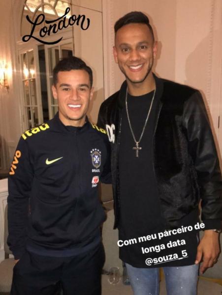 Souza visitou Philippe Coutinho na concentração da Seleção Brasileira, em Londres. Sabe o que ambos têm em comum? Foram revelados na base do Vascão! ⚪️⚫️💢👏