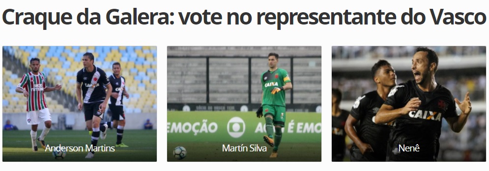 O GloboEsporte.com abriu votação para o representante do Vasco na eleição do "Craque da Galera", promovida todo ano pela CBF. Os pré-selecionados são Anderson Martins, Martín Silva e Nenê. A premiação acontece numa festa patrocinada pela entidade após o término do Campeonato Brasileiro.