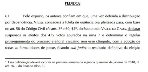 A juíza Maria Cecília Pinto Gonçalves, da 52ª Vara Cívil do Rio de Janeiro, despachou uma liminar onde desconsiderou a urna 7 da eleição do Vasco, que contém 475 votos. Com isto, momentaneamente o candidato de oposição Julio Brant torna-se o vencedor do pleito com Eurico Miranda em segundo lugar.