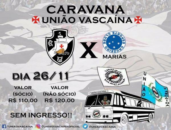 União Vascaína promove caravana para Cruzeiro x Vasco, dia 26/11 em BH