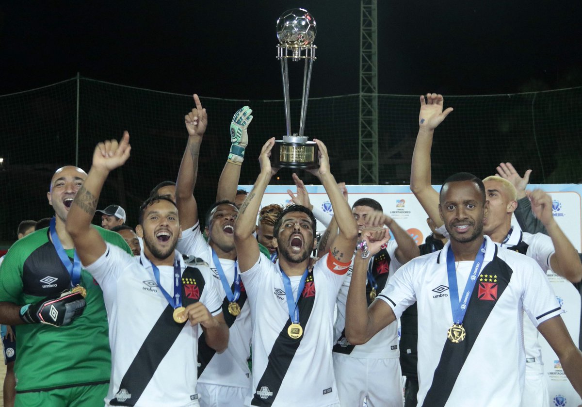 - Graças a Deus conquistamos mais um título para o Vasco! Consegumos impor o nosso ritmo e administrar o placar no momento que a partida ficou um pouco complicada. A partida chegou a ficar 3 a 2, mas abrimos vantagem rapidamente e conseguimos fazer 7 a 2, o que nos deu a oportunidade de colocar todo mundo em quadra para participar da festa. Foi uma conquista importante, se trata de um Bicampeonato da Libertadores. Ganhamos as duas edições que tiveram até agora e já estamos garantidos na próxima. Em nome do grupo, agradeço aos torcedores vascaínos pelo apoio - afirmou o treinador Fábio Costa, sem esconder a satisfação com a conquista do título.