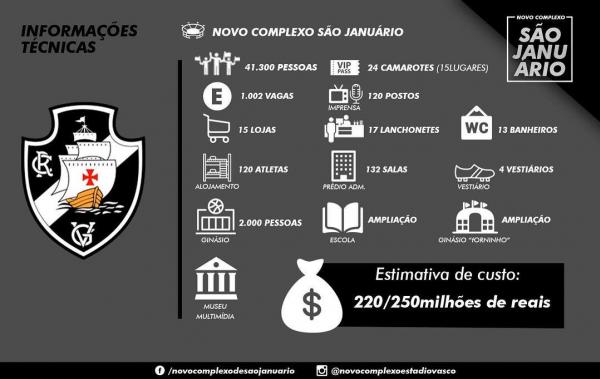 Fonte: Saudações Vascaínas (texto), Facebook Novo Complexo São Januário (fotos), Instagram Novo Complexo São Januário (fotos)