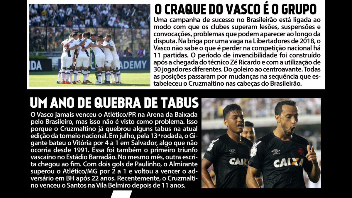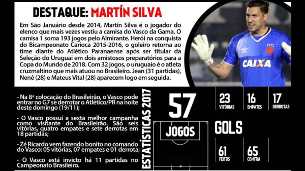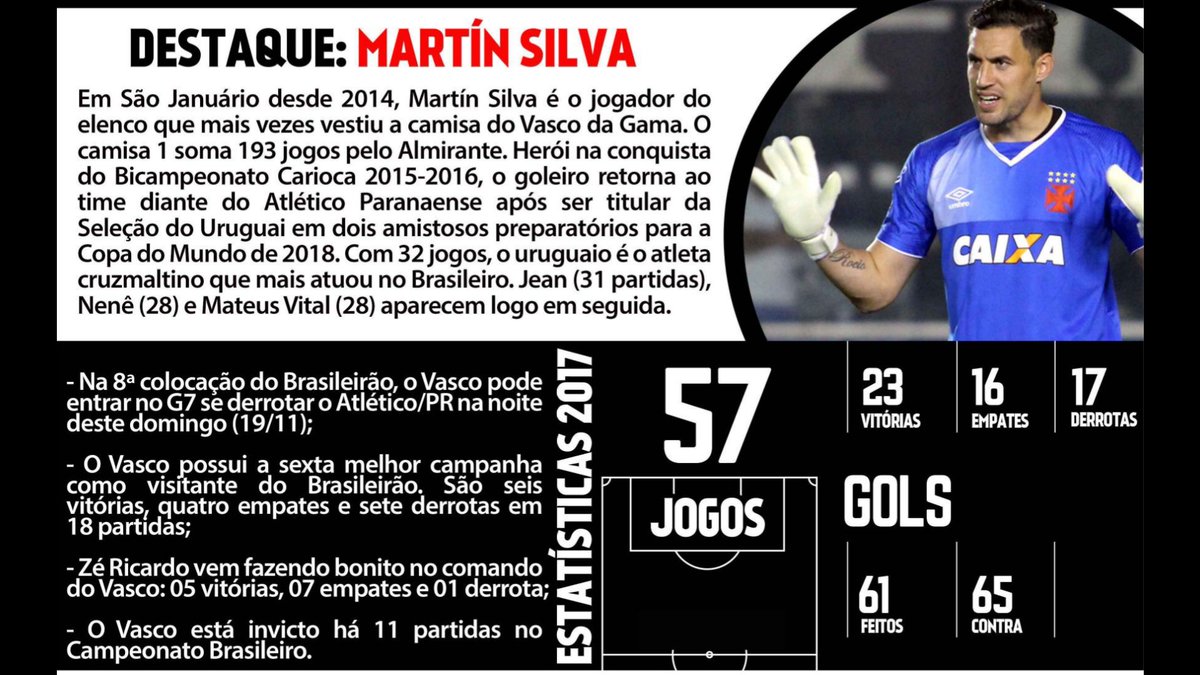 19/11/17 - Vasco tem retrospecto favorável contra o Atlético-PR na história dos confrontos