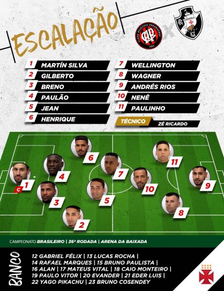 O Vasco enfrenta o Atlético-PR neste domingo com Martín Silva de volta após ficar as 3 últimas rodadas com a Seleção do Uruguai. Wagner é a novidade no time titular, no lugar de Yago Pikachu.