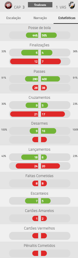 Confira estatísticas de Atlético-PR 3 x 1 Vasco