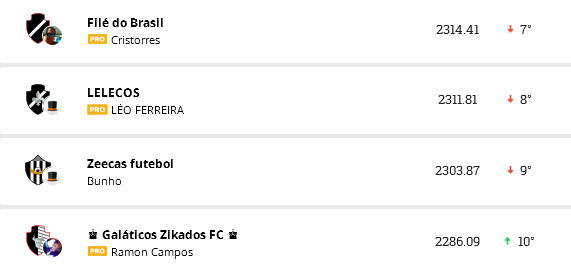 20/10/17 - Cartola FC: Confira a classificação da Liga NETVASCO após a 29ª rodada