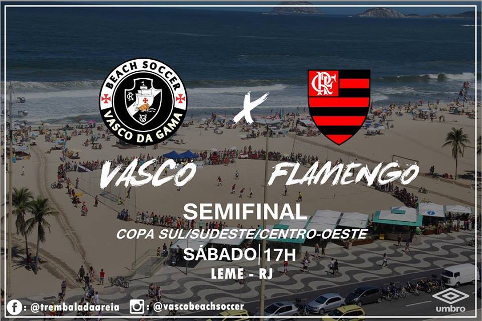 Pela semifinal da Etapa Sul/Sudeste/Centro-Oeste da Copa do Brasil de Beach Soccer, o Vasco enfrenta o Flamengo neste sábado às 17h na Praia do Leme.