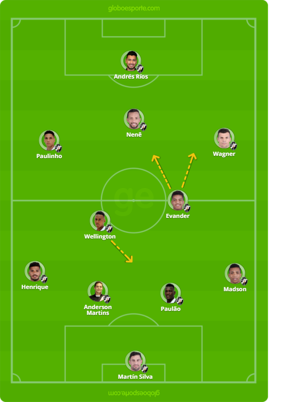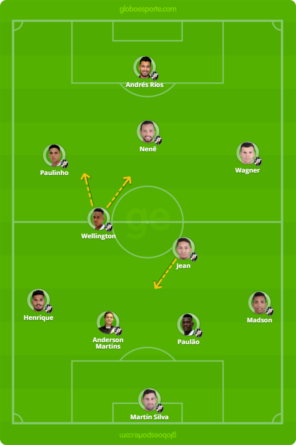 Quem está em boa fase e tem presença certa é Wellington. Quando joga ao lado de Jean, é dele a função de sair mais para ser um elemento surpresa na frente. Nas vezes em que atua com Evander, é Wellington quem fica mais fixo na marcação.