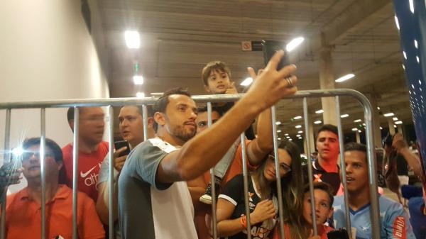 Nenê e Evander tiraram fotos com torcedores na saída do Mineirão