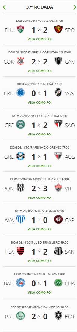 No encerramento da 37ª rodada Campeonato Brasileiro, o Botafogo foi derrotado pelo Palmeiras por 2 a 0 na noite desta 2ª-feira no Allianz Parque, em São Paulo. Com esse resultado, o Vasco passa a precisar de uma vitória por qualquer placar contra a já rebaixada Ponte Preta, no domingo, em São Januário, para se classificar para a Copa Libertadores da América.