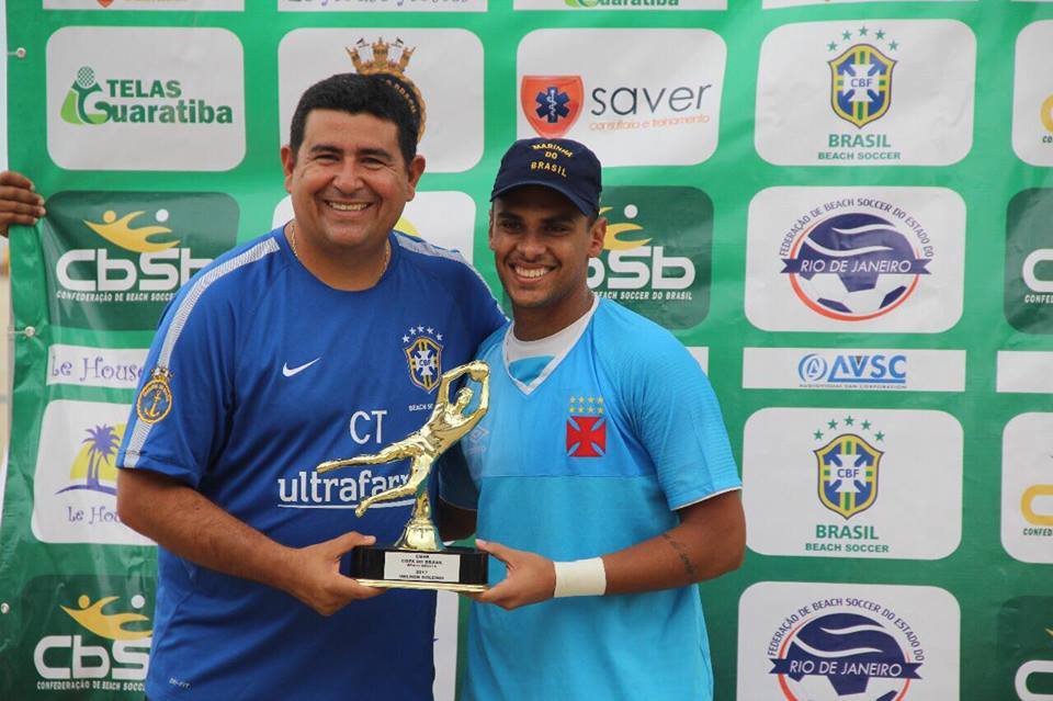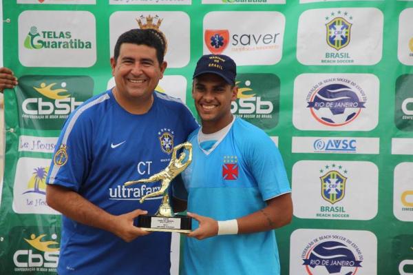 O Treinador da Seleção Feminina de Beach Soccer do Rio de Janeiro Juninho ( ex-jogador da seleção), entregou o troféu de artilheiro da competição ao jogador Izaque do Joiville.