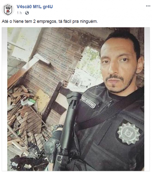 Uma foto de um policial (ou de um suposto policial) parecido com o craque vascaíno Nenê viralizou nas redes sociais. Os torcedores brincam, dizendo que o camisa 10 do Vasco teria dois empregos. Veja a foto: