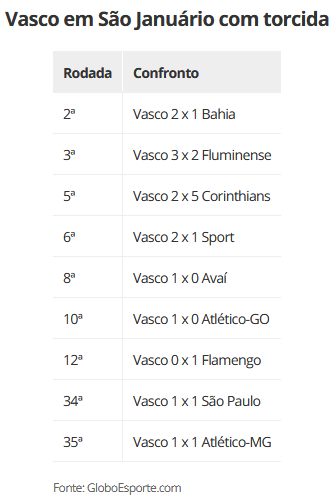 - Vai ser indescritível ter o nosso torcedor aqui. Passamos por dificuldades longe de casa, e voltar a contar com São Januário foi de extrema importância. No início, um dos jogos mais difíceis para os adversários era aqui dentro do nosso Caldeirão. Foi muito bom ter nossa casa de volta, fizemos jogos importantes aqui e não deixamos de pontuar diante de concorrentes diretos, como o São Paulo e o Atlético-MG. Vamos nos esforçar ao máximo para ver o torcedor ter um domingo de comemoração aqui em São Januário, para ver a festa na nossa casa como os vascaínos estão acostumados ao longo da história do clube - afirmou o volante Jean.