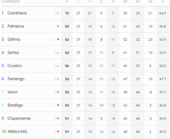 - Empatar com a Ponte Preta, o Flamengo perder, o Botafogo não vencer, a Chapecoense não vencer e o Atlético-MG não vencer