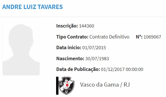 O meia Andrezinho, que estava emprestado ao Goiás, teve seu vínculo com o Vasco reativado de acordo com o Boletim Informativo Diário da CBF.