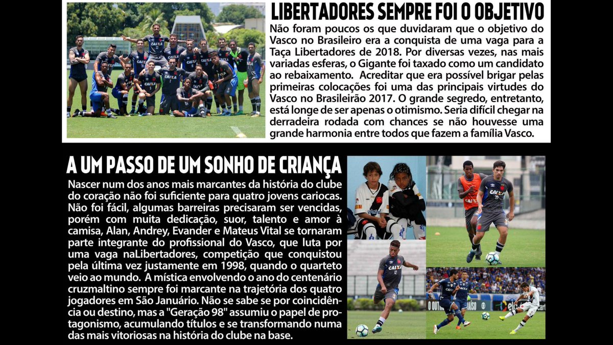 Vasco divulga guia do jogo deste domingo contra a Ponte Preta para a imprensa; confira