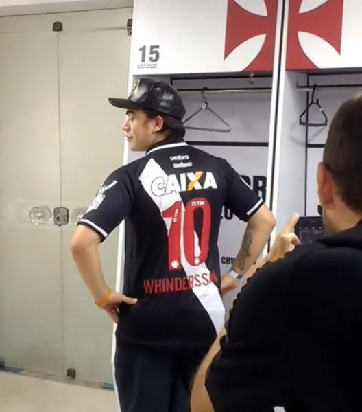 Presença ilustre! Vascaíno declarado, o youtuber @whindersson marca presença aqui em São Januário, onde recebeu camisa autografada, posou para foto e atendeu os fãs.