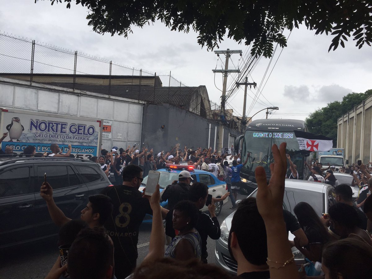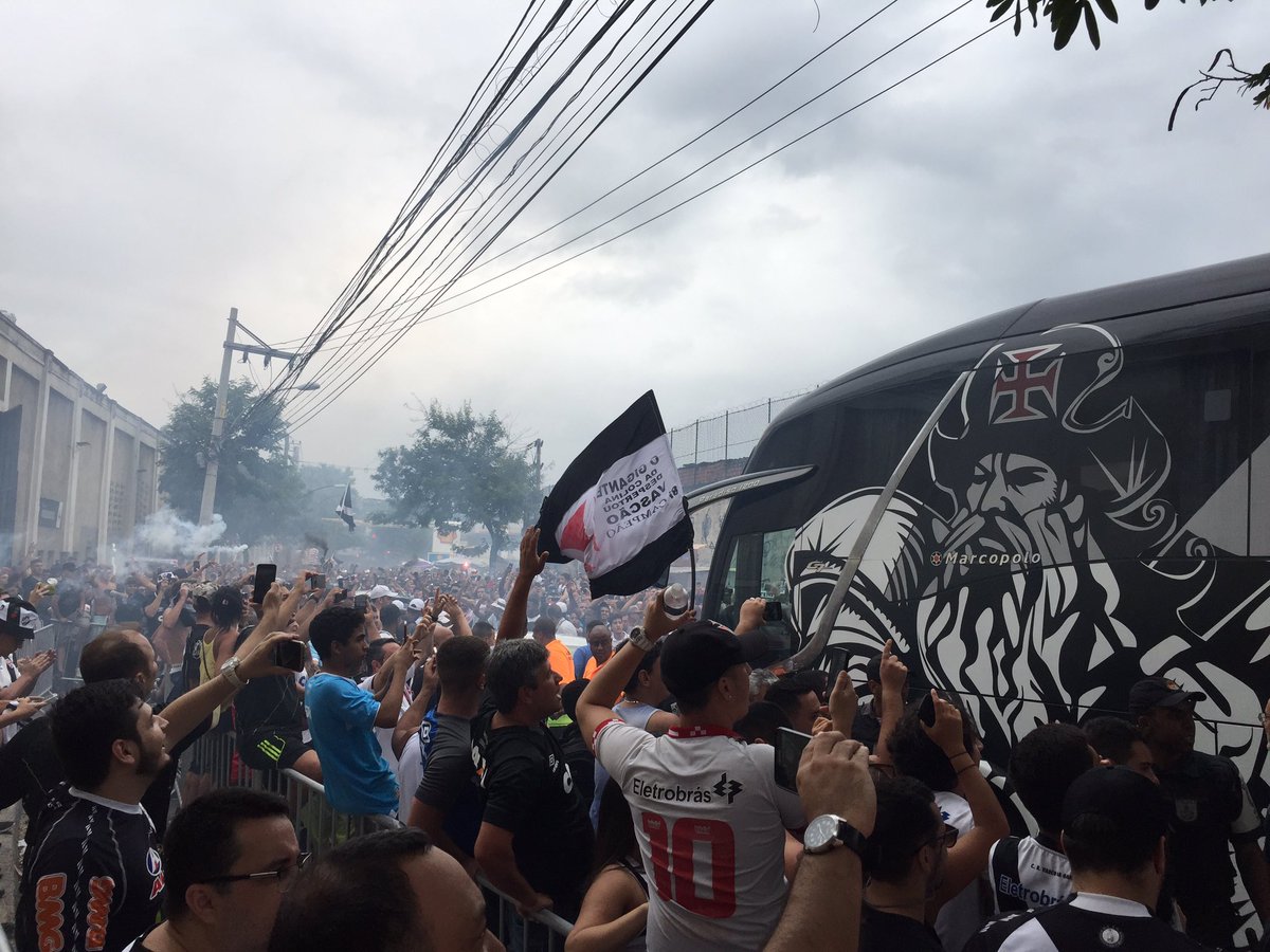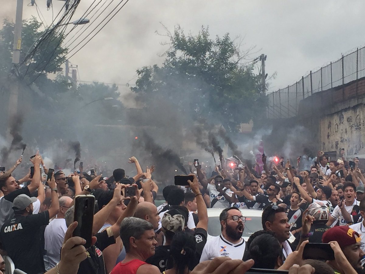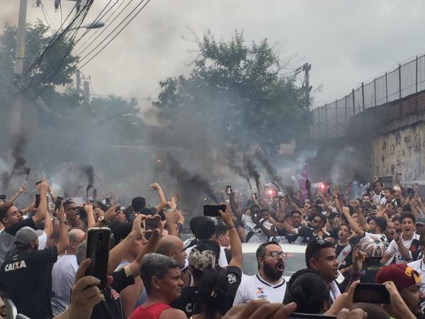 Torcedores fazem festa na chegada do ônibus do Vasco a São Januário; veja fotos
