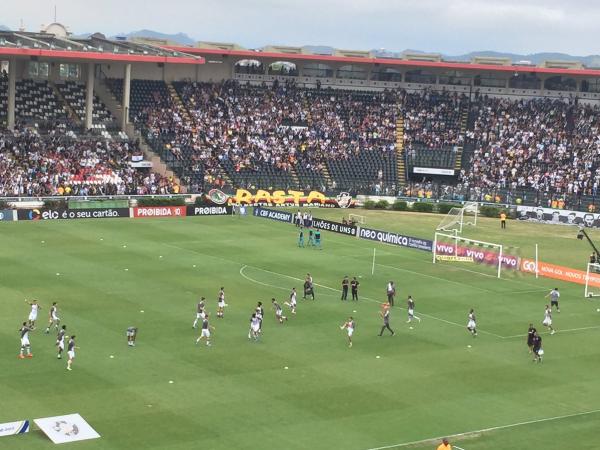 16:31 - Frase 'Contra tudo e contra todos' é exibida no telão de São Januário