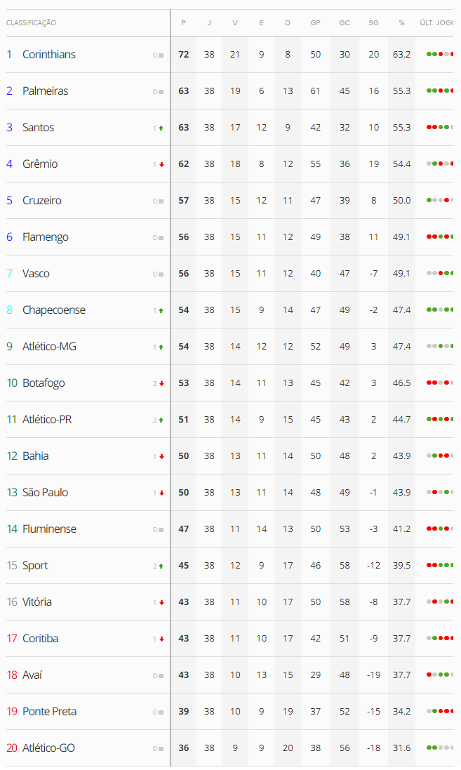 Terminada a 38ª e última rodada do Campeonato Brasileiro 2017, o Vasco, que derrotou a Ponte Preta por 2 a 1, finalizou a competição em 7º lugar e garantiu uma vaga, no mínimo, na Pré-Libertadores 2018. Caso o Flamengo conquiste a Copa Sul-Americana (está na final contra o Independiente-ARG), o Vasco se garantirá na fase de grupos da Libertadores.