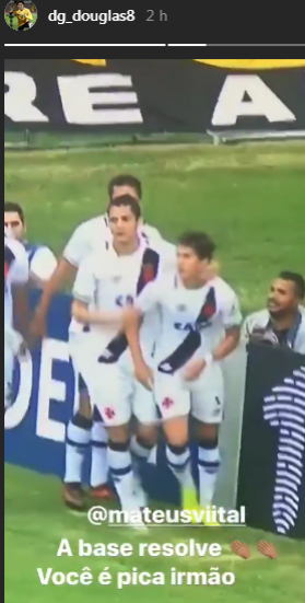 O volante Douglas Luiz, vendido recentemente pelo Vasco ao Manchester City-ING, mas emprestado ao Girona-ESP, assistiu ao jogo do Gigante da Colina neste domingo. O jogador publicou no Instagram um vídeo exaltando a classificação vascaína à Libertadores e fez questão de elogiar Mateus Vital, autor do 2º gol do Vasco.
