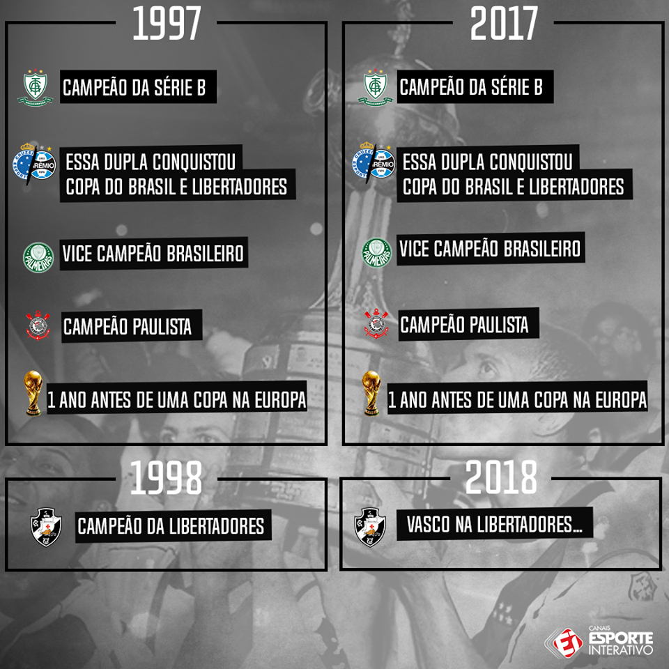 Comparação de 1997 com 2017 aponta que Vasco pode ser campeão da Libertadores em 2018; confira