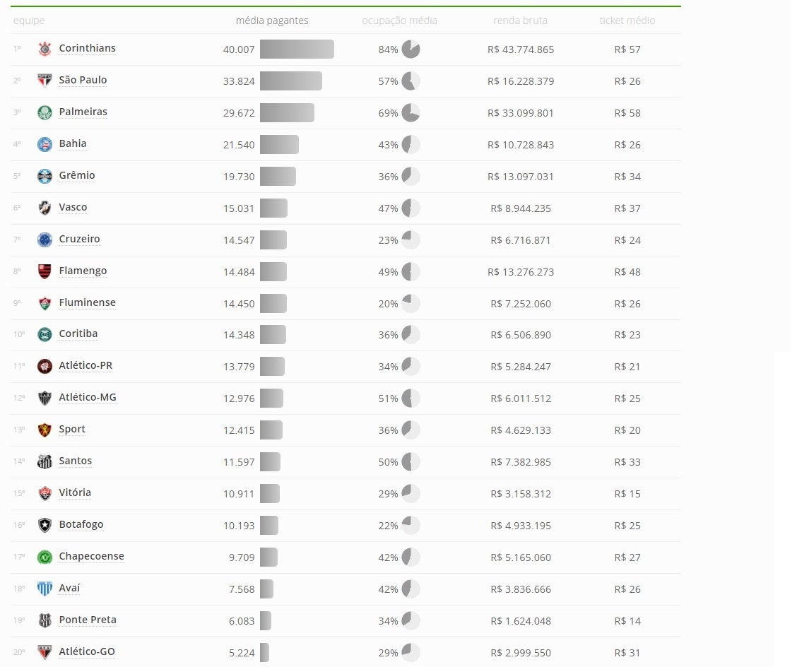 Ranking de Média de Público Pagante do Brasileirão 2017: