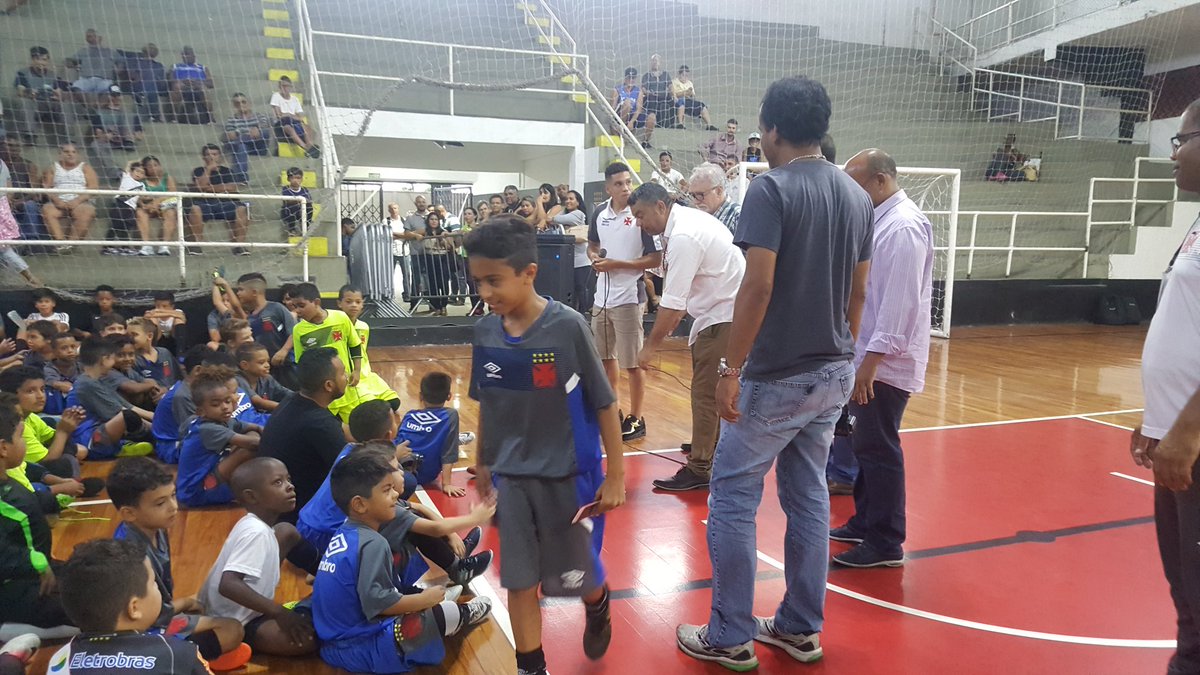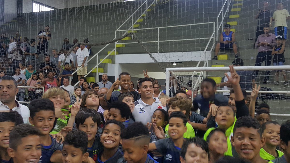 Olha a recepção da criançada da base ao Paulinho. Atacante vai dar palestra. #gevas pic.twitter.com/73Y4cIrKfP