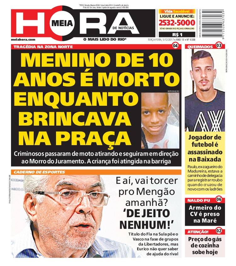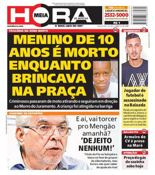 A declaração do presidente vascaíno Eurico Miranda sobre torcer ou não pelo Flamengo na decisão da Copa Sul-Americana, para que o Vasco possa entrar na Libertadores na fase de grupos, foi capa do jornal Meia Hora nesta terça-feira.