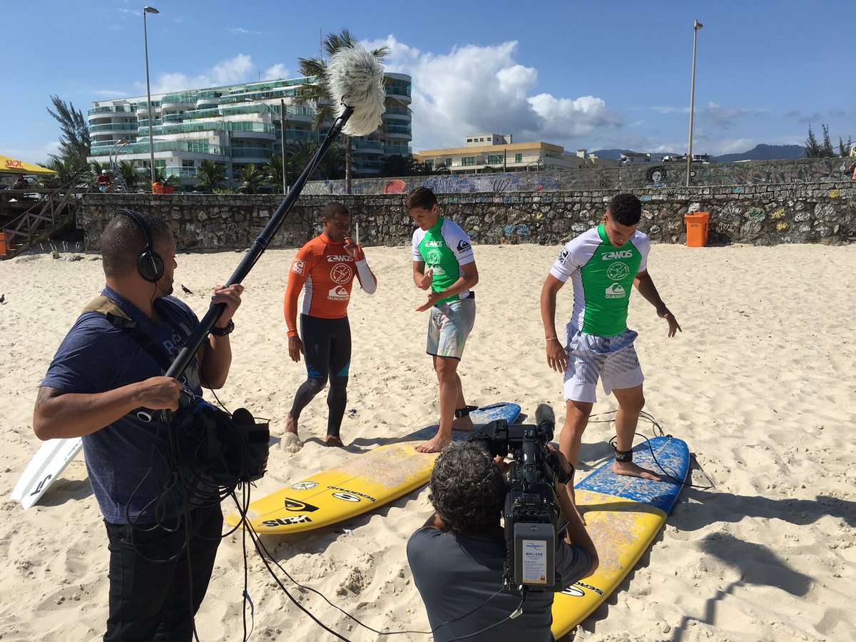 Mateus Vital e Paulinho surfam e gravam matéria para o 'Esporte Espetacular'