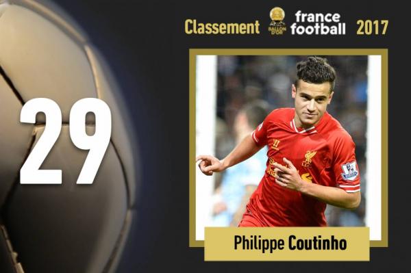 O lateral Marcelo ficou na 16ª colocação, e o meia Philippe Coutinho foi o 29º (empatado com Mertens) na disputa pela Bola de Ouro, prêmio tradicionalmente concedido pela revista "France Football". A publicação começou a divulgar a lista na tarde desta quinta-feira o ranking dos 30 finalistas, revelando os nomes em ordem decrescente, e segue anunciando as posições em seu site.