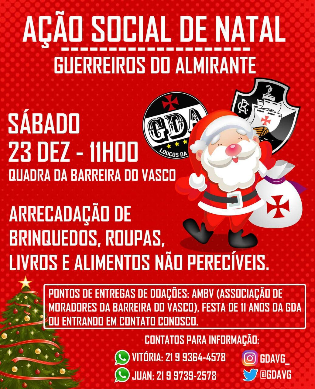 AÇÃO SOCIAL DE NATAL - GUERREIROS DO ALMIRANTE E ASSOCIAÇÃO DE MORADORES DA BARREIRA DO VASCO.