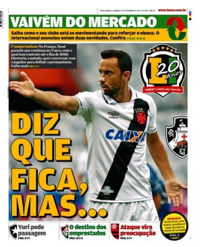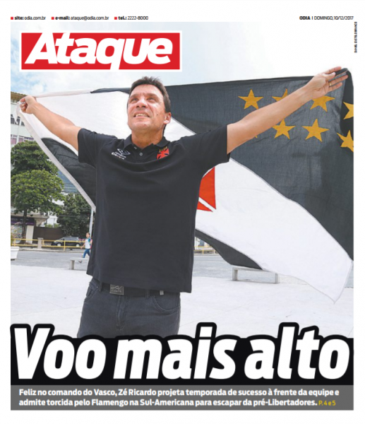 Nenê e Zé Ricardo ganharam capa de jornal neste domingo. O camisa 10 vascaíno foi destacado pelo Lance!, em meio à indefinição sobre sua permanência ou não no clube. Já o treinador cruz-maltino foi capa do Ataque, suplemento esportivo do jornal O Dia, para o qual concedeu entrevista.