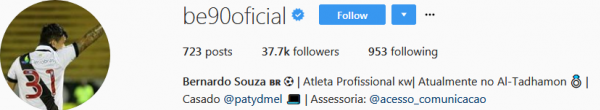 Fonte: NETVASCO (texto), Instagram do jogador Bernardo (imagem)