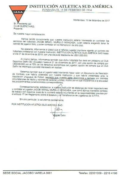 Especulado no @VascodaGama, o atacante Jabob Murillo deve ir para o Querétaro-MEX. Jogador pertence ao Sud América-URU, mas está emprestado ao Delfín-EQU, que já sinalizou que vai comprar o atleta e negociá-lo. @RdMaisEsportes