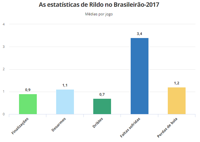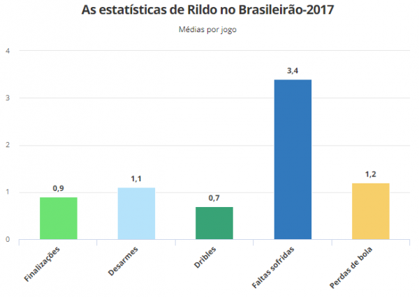 As estatísticas de Rildo no Brasileirão mostram que não se deve esperar um goleador. Ele é o típico ponta moderno, capaz de fechar a marcação pelos lados e com força para ajudar no ataque. Defensivamente, por exemplo, chama a atenção a eficiência para desarmar rivais: 72%.