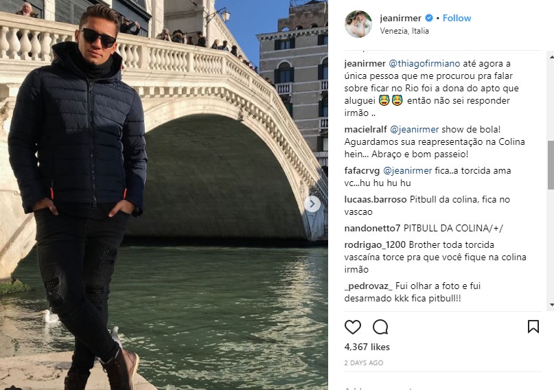 Em sua conta no Instagram, o volante Jean afirmou que não foi procurado pelo Vasco para renovar contrato e permanecer no Rio de Janeiro.