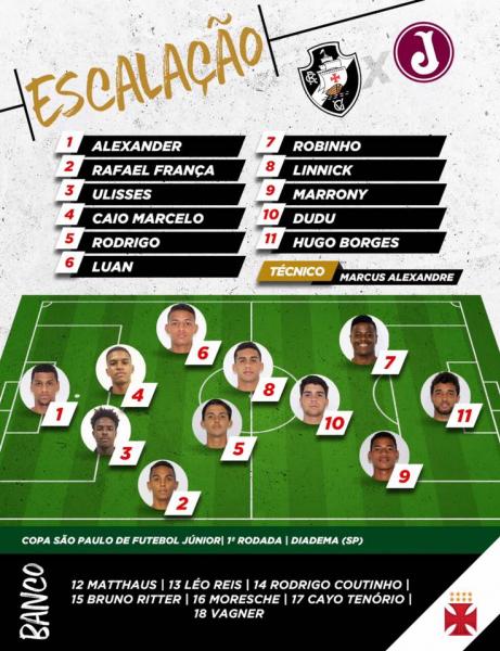Gigante da Colina escalado para enfrentar o Juventus (SP) na 1ª rodada da Copa São Paulo de Futebol Júnior! #VascoNaCopinha2018 #RaizÉSerVasco