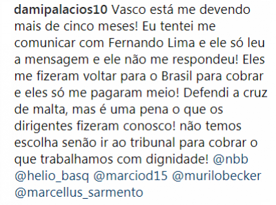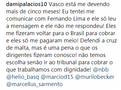 Basquete: No Instagram, jogadores que já deixaram o Vasco reclamam de pendências salariais