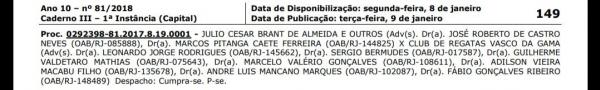 As decisões atuais vigentes da desembargadora Márcia Ferreira Alvarenga, da 17a Câmara Cível, e da juíza Maria Cecília Pinto Gonçalves, da 52a Vara, dadas pouco antes do recesso, foram publicadas na edição desta terça do Diário da Justiça Eletrônico do Estado do Rio #lanceVAS