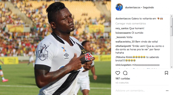 Fonte: NETVASCO (texto), Instagram do jogador Riascos (foto)