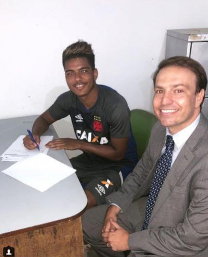 Muito contente por hoje está renovando meu contrato com o clube do meu coração. Agradeço muito a Deus, minha família e a todos que me apoiaram até aqui. Continuarei dando o meu máximo independente de tudo para conquistar coisas maiores com essa camisa. #FechadoComOVasco #Liberta2018