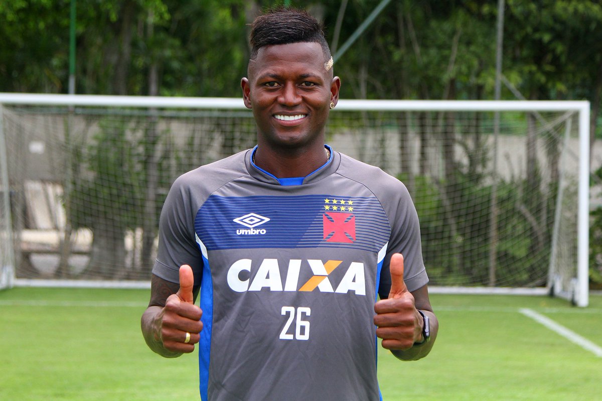 O atacante colombiano Riascos chegou ao Rio nesta sexta-feira, fez exames médicos e já treinou com o elenco do Vasco no Centro de Treinamento de Vargem Grande, onde a equipe realiza sua pré-temporada. Riascos aproveitou e posou para uma foto com o uniforme de treino. Confira: