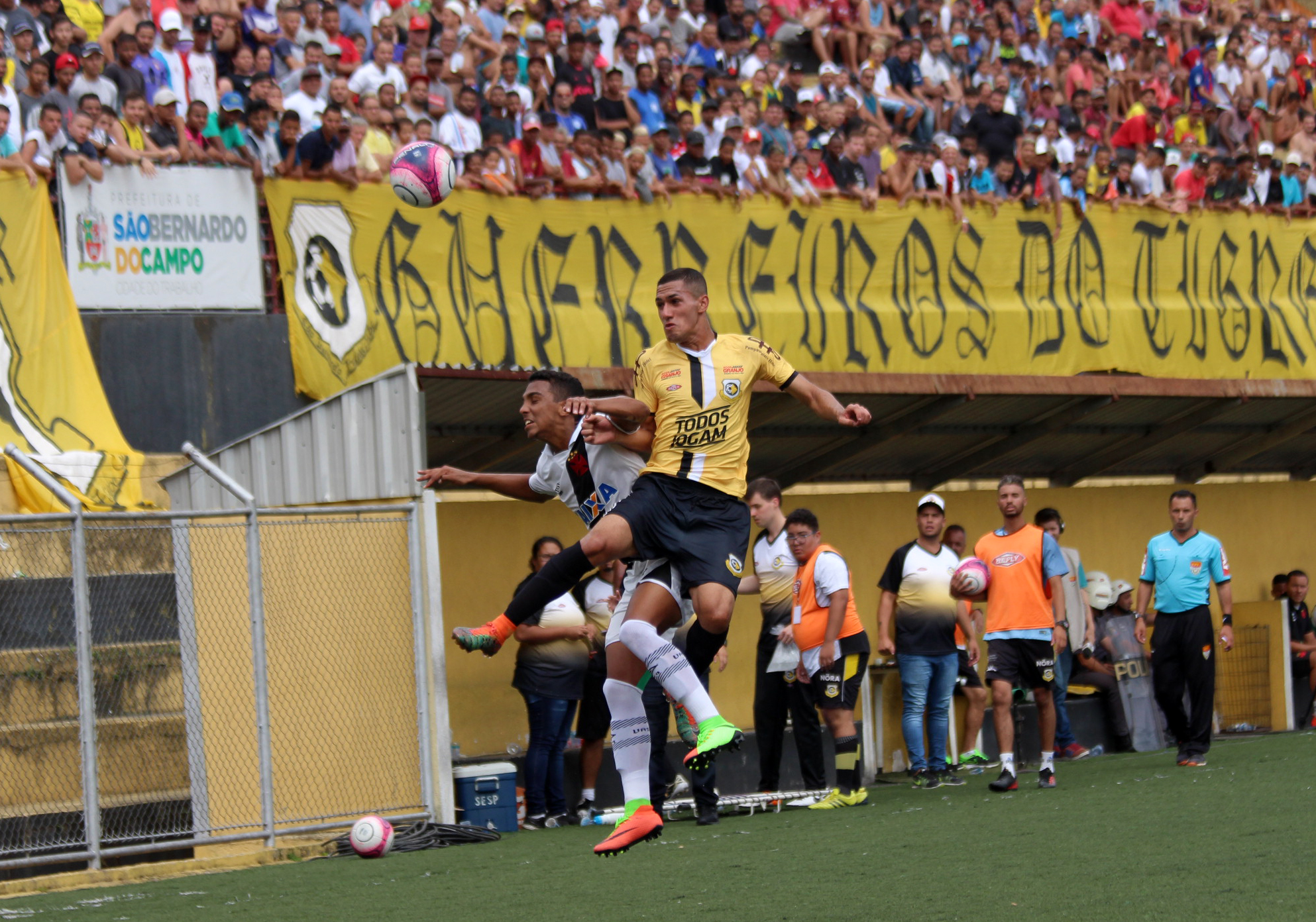 Atuando longe de seus domínios, o Vasco viu o São Bernardo abrir o placar logo aos cinco minutos de bola rolando. Bruno Michel recebeu na área, fez o giro e concluiu para o gol: São Bernardo 1 x 0. O feito não pressionou o Gigante da Colina, que deu a resposta na sequência. Robinho cruzou pela direita e Marrony cabeceou para deixar tudo igual na casa do adversário: VASCO 1 a 1.