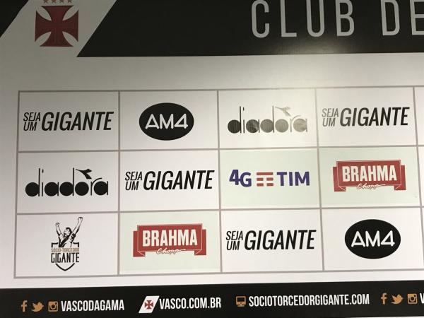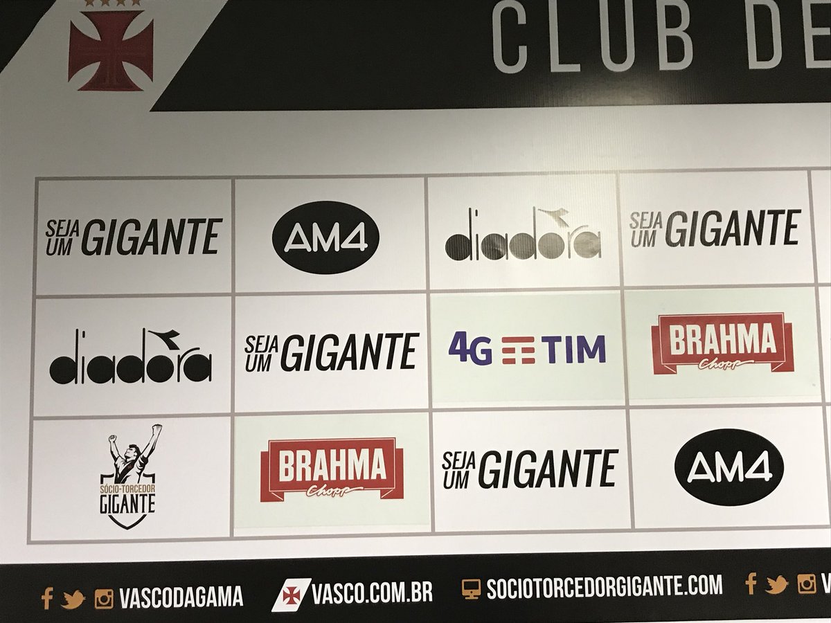 Novidade no backdrop do Vasco. Marca da Diadora já presente.