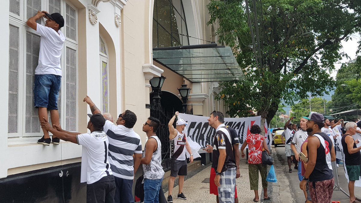 Torcedores penduram faixa em São Januário, pedem para Luis Fernandes marcar a eleição e para Paulinho seguir no Vasco